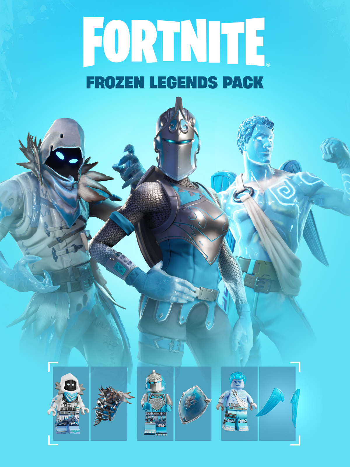 ¡Tiembla de frío y emoción en esta temporada con el paquete Leyendas congeladas! Incluye 3 atuendos (con estilo LEGO®) y 3 mochilas retro.